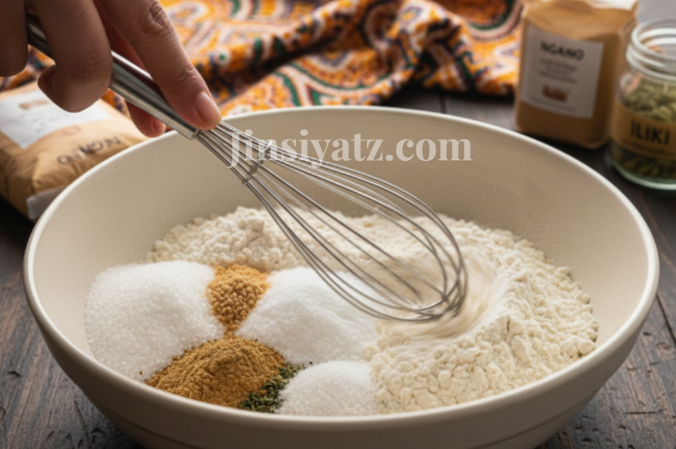 Hatua ya 1: Kuandaa Mchanganyiko Mkavu Kwenye bakuli lako kubwa, changanya vitu vyote vikavu: ngano, sukari, hamira, baking powder, iliki ya unga, na chumvi. Tumia mchapo (whisk) au kijiko kuvichanganya vizuri ili vienee kila mahali.